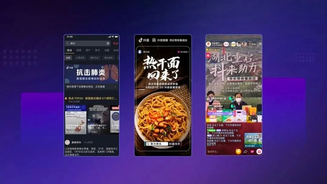 疫情也让很多商家第一次直播带货,也是很多人第一次尝试直播购物。甚至很多地方政府,也加入直播带货行列。当时武汉解封后,武汉副市长就进到了抖音直播间来推广当地特产。