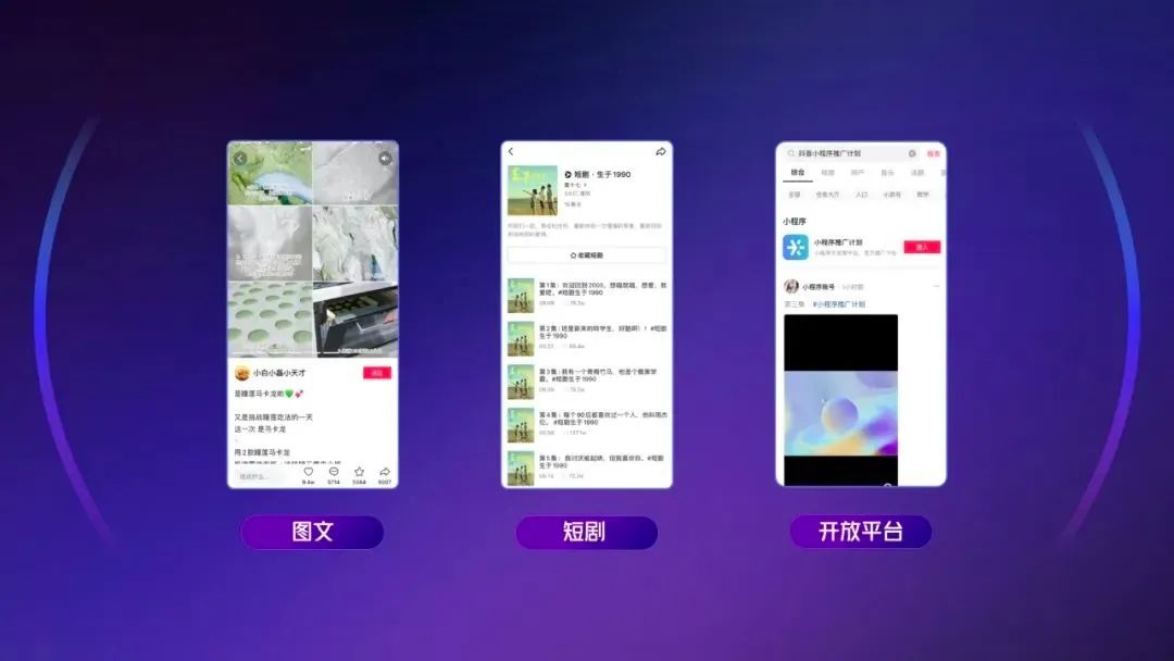 前段时间我们还推出了抖音开放平台,并跟饿了么达成合作。商家可以通过抖音小程序,把自己的商品、服务推荐给更多人。我们希望通过开放平台,助力中小企业数字化转型,一起服务好用户的多元需求。