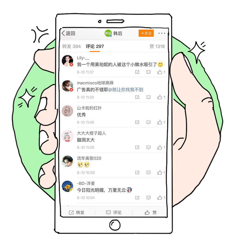 因为,韩后要上市一款史上最嫩的产品「芽萃精华小嫩水」,它聚集了四种大牌精华:法国 YST 水解酵母蛋白、植物胚芽微量、水织网、水嫩因子,能全面打造水嫩的肌肤。使用体验,其效果堪比大牌水。