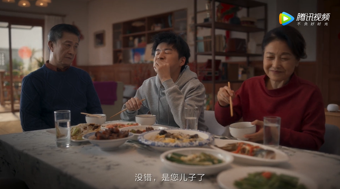 故事最后,一家人终于坐在一起吃起了团圆饭,老父亲不敢相信地问智能精灵:这是我儿子吗?