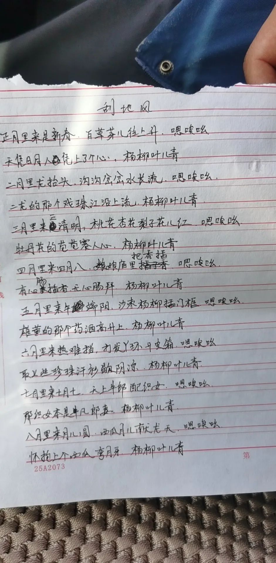 主唱大爷亲手写的歌词