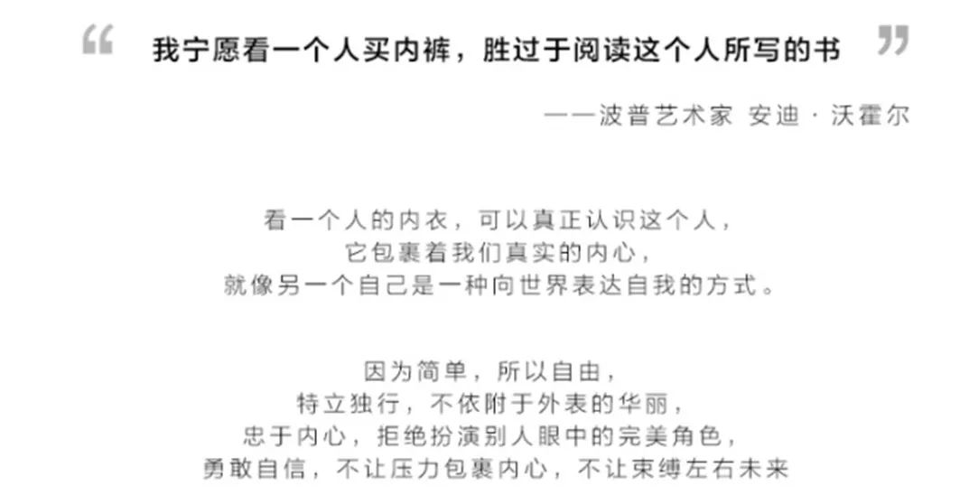 “看一个人的内衣,可以真正认识这个人,它包裹着我们真实的内心,就像另一个自己是一种向世界表达自我的方式……”