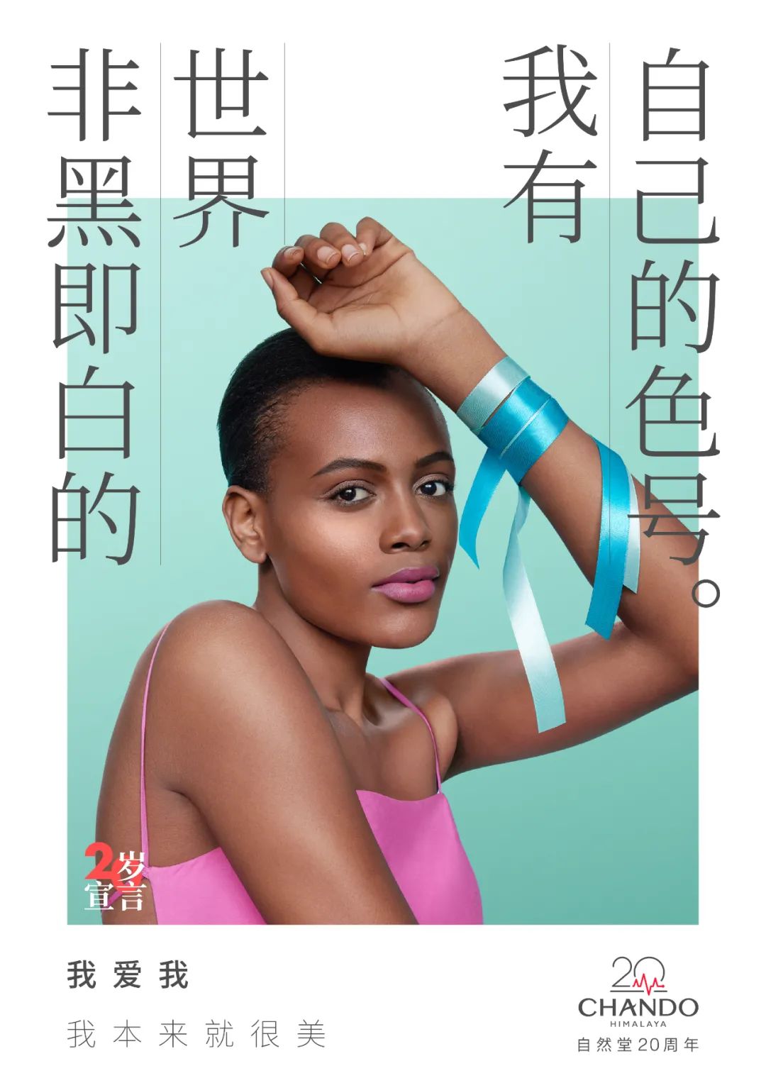 自然堂没变,而是随着女性自我意识的变换,品牌进行了价值输出上的自我更新与成长。我们将经典的SLOGAN从“你本来就很美”变为“我本来就很美”,并顺势推出一组20岁宣言海报。从五个角度去窥见Z时代的世界观,与消费者同频共振。