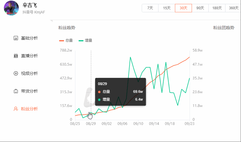 从2022年8月26日至今,一共涨了700万粉丝。另外在快手,他的粉丝也有近300万,全网粉丝超过1000万。