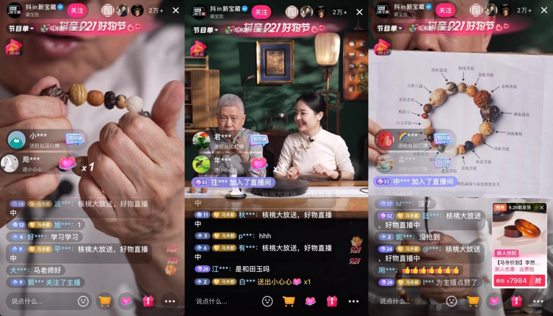 知名学者和收藏家马未都、95后新锐珠宝设计师龙梓嘉现身抖音电商「藏宝图」行业活动“东方美学馆”专场,瓷器、翡翠、茶叶等众多珠宝文玩类商家的直播接棒上演。