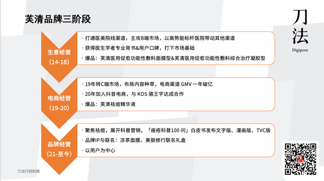 最后总结一下芙清的品牌化进程的 3 个关键转折点:
