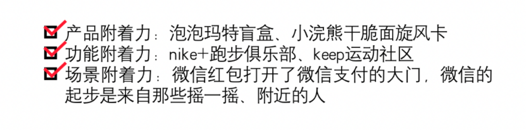 附着力法则又称“信息包装方法”:附着力是指能够影响目标人群的任务或设置,是推动人们产生行动的能力,是一个信息传播的触发器。附着力是要让顾客明白如何把产品安排进自己的生活,是与真实生活的连接和互动,它能够提升顾客的参与感,形成用户养成计划,引发顾客的好奇和吸引注意力。