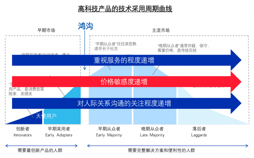 价格和渠道今天没有涉及到,但在《跨越鸿沟》的书中作者也有提到一些观点,我结合自己的理解稍作补充: