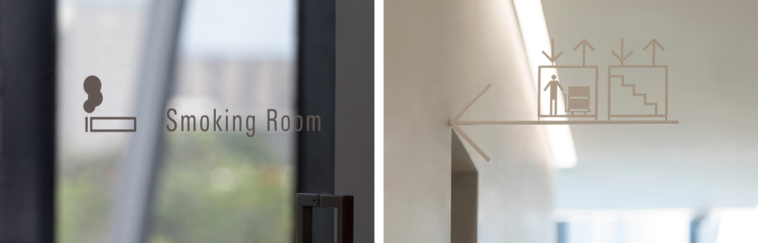 而这次除了logo,原研哉也为这个品牌大楼设计了一系列的标识导视。