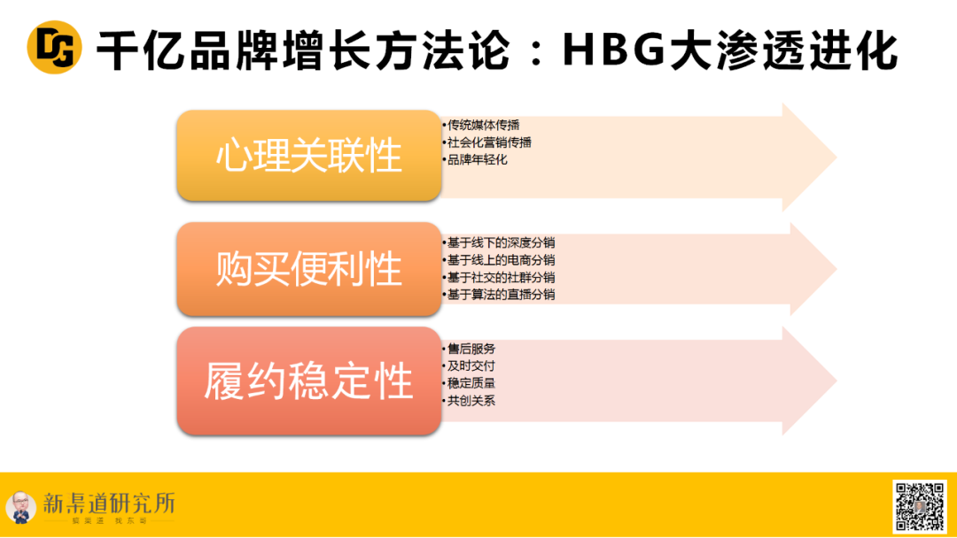 这是我们在新时代多渠道结构分销红利的一点思考,我们是 HBG 理论的信奉者,我们始终相信,只有进行心智的大渗透,渠道的大渗透以及履约的大渗透,才能全面地推动品牌的增长。