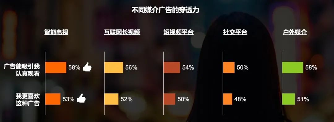 若以OTT来看,其内容质量首先是因为大屏的存在而突出,强曝光、高沉浸、创新互动体验等等都是其他数字屏并不具备的特点。而且大屏的观看体验也是可以在短时间内帮助品牌独占用户注意力,有效加深用户的记忆点。