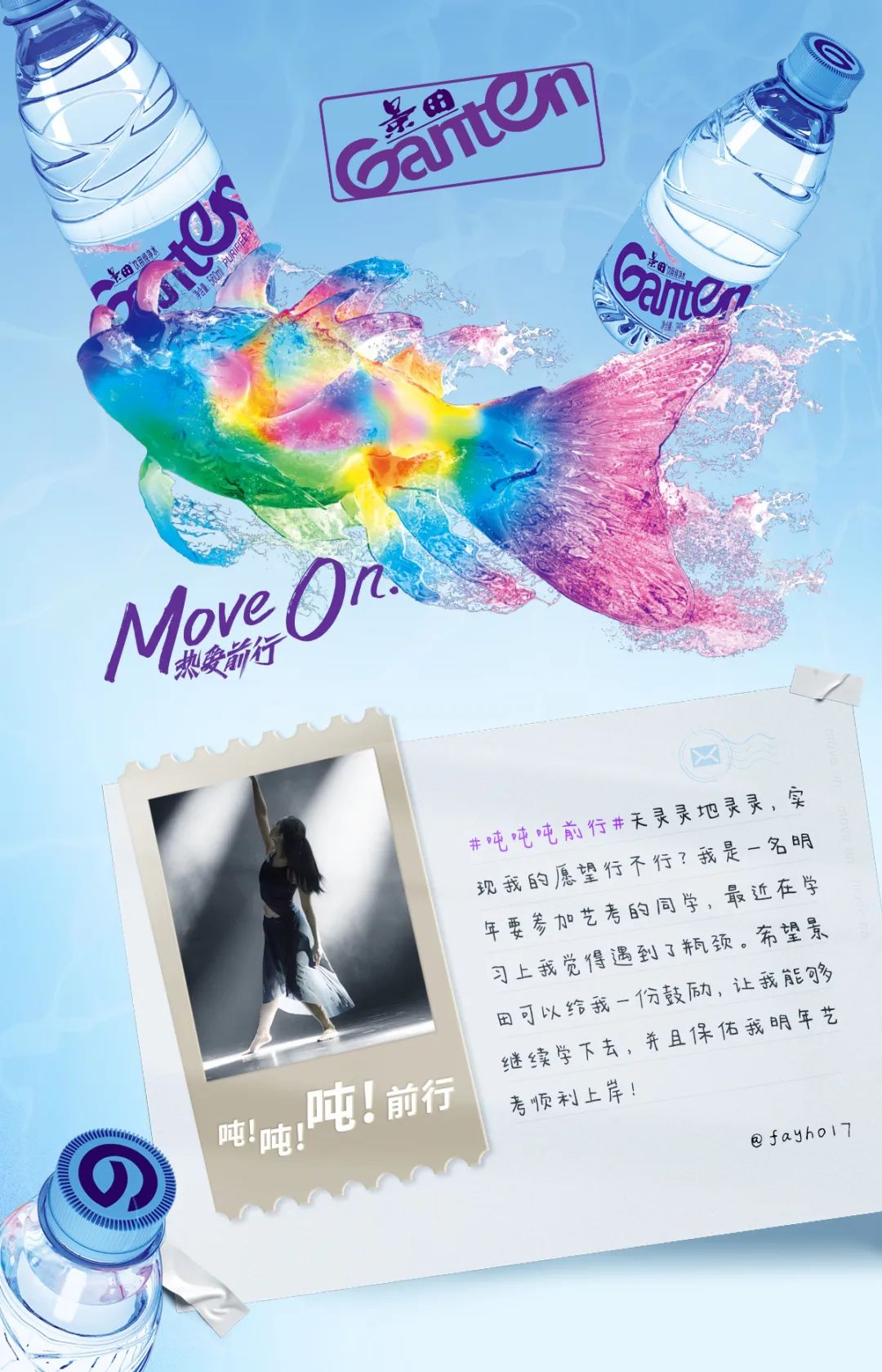 好玩有梗的话题引发网友热情互动,品牌也收集到了众多年轻人关于前行小目标的UGC故事:想要拿下马拉松的女生;想要艺考顺利上岸的预考生;想要自由出发,勇敢做自己喜欢事情的网友;想要写出完美大结局的网络小说家…因为热爱,他们在前往目标的路上坚定而无畏;即使外界充满质疑,也能带着“吨吨吨”式的能量向前冲。