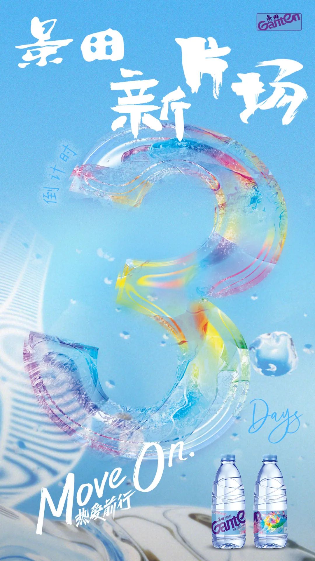 同时,景田矿泉水还在官微不发了#景田新片场#倒计时海报,七彩水润的倒计时数字,大片质感画面呈现,让人对即将到来的大动作充满期待。