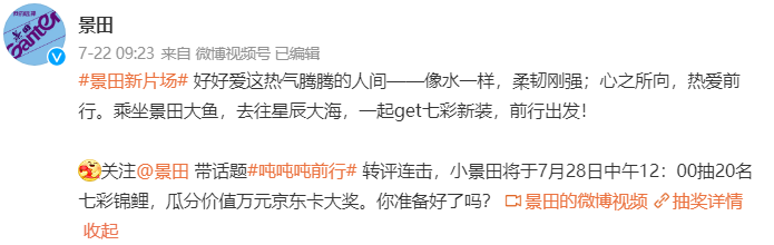 品牌年轻化也好,品牌焕新升级也罢,都是一个系统性工程。细观景田重塑品牌的背后逻辑,不难发现,品牌始终遵循体系化思维。首先从品牌定位出发,以“七彩锦鲤”作为品牌的视觉符合,并贯穿于产品价值维度;其次,提出“热爱前行,Move on”的全新理念,在社交平台上以社会角色撬动品牌年轻活力的进阶,实现与用户的深度的对话和沟通。