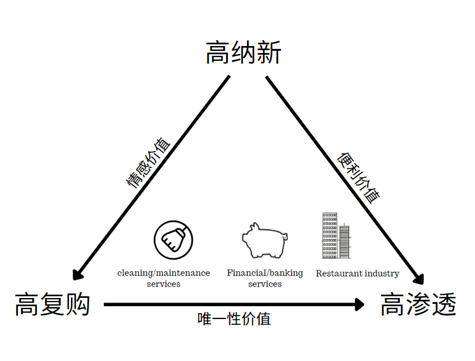 分销密度、订单密度比别人高的,叫高渗透。大众成熟品牌的最大价值在于高渗透,特别是快消品领域。