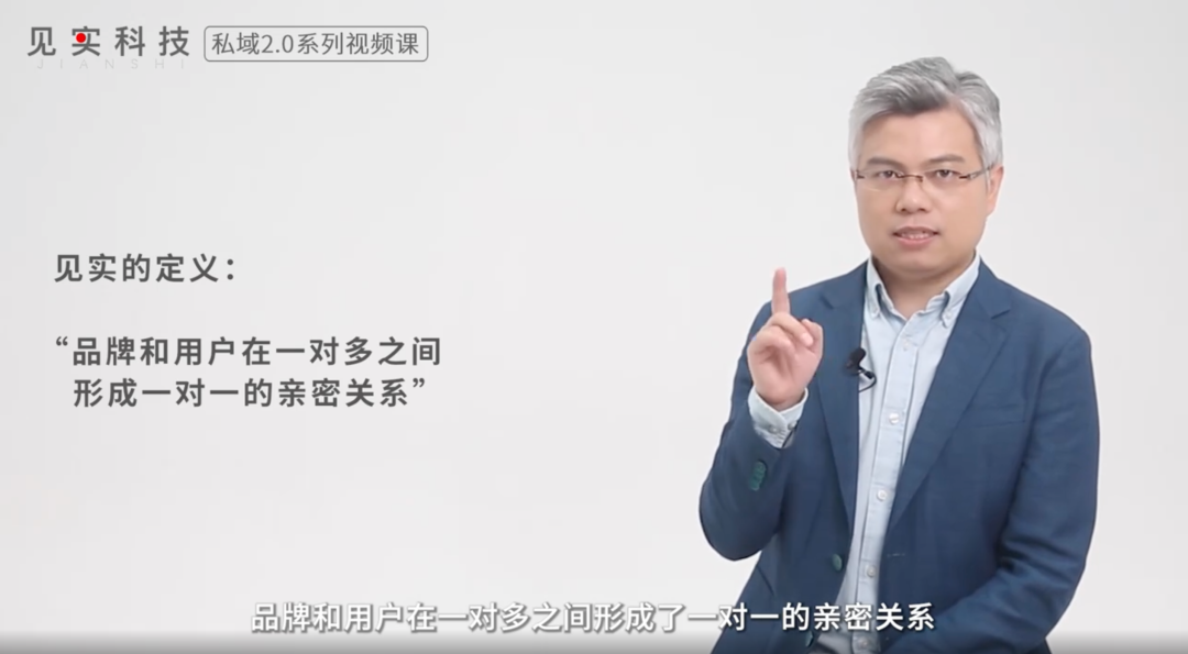 我们见实团队对私域的定义和腾讯的定义很类似,只是有点拗口。我们是这么说的:“品牌和用户在一对多之间,形成一对一的亲密关系”。