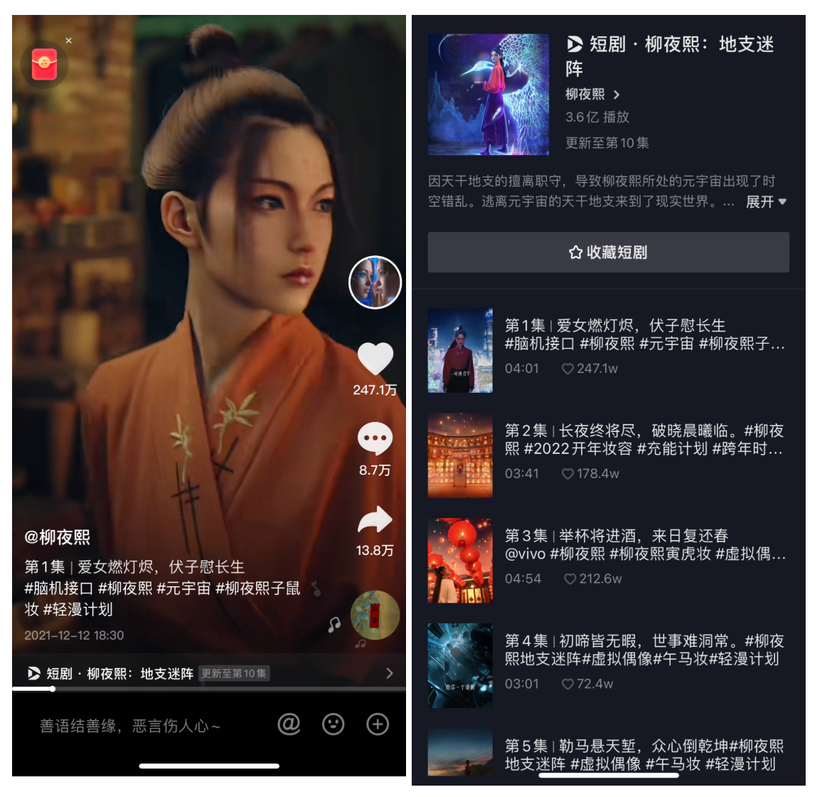 这种做法其实就是“只管生,不管养”。过去的人物角色要靠广告来演绎,来传播。而现在的虚拟偶像则要靠内容来供养。只有不断围绕虚拟形象去打造内容,才能赋予它以生命力。比如哈酱是依托华纳音乐推出了多首单曲和MV,柳夜熙则是靠优质的系列短剧来吸引粉丝。
