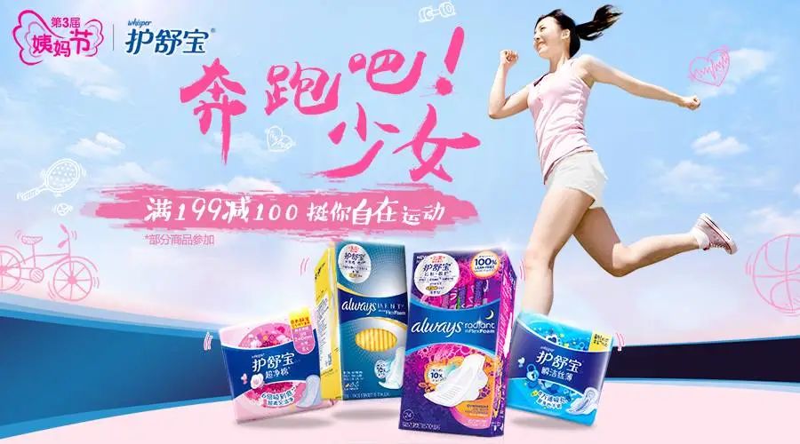 代表品牌如护舒宝,它的广告内容都是在强调有了护舒宝,让女生的烦恼和担心一扫而空,通过使用产品前后心态的转换,诉求品牌让“女人月当月快乐”,让“青春透口气”。包括产品层面,也强调卫生巾有魔法瞬吸层,瞬间吸收不怕漏。
