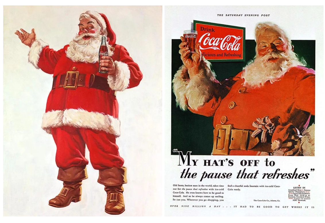 比如如今圣诞节常见的圣诞老人,很少有人意识到,圣诞老人现在这个造型是可口可乐公司发明,而过去的圣诞老人都是穿绿色衣服的。