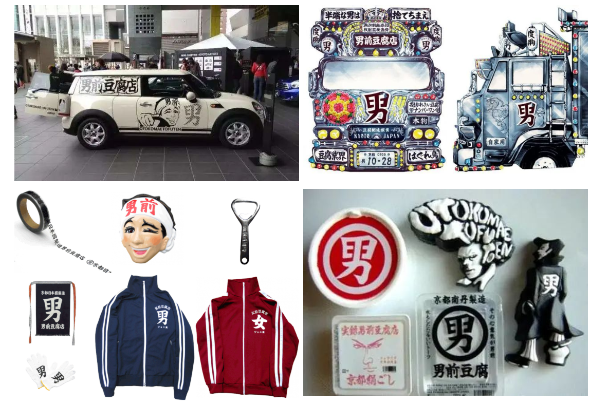 男前豆腐的做法,就是用文化内涵的注入,让产品完成内容化改造。因为这种潇洒、热血的男子汉文化受到民众的欢迎,男前豆腐变成了一个流行IP。于是男前豆腐又将独特的品牌文化进行内容产品化运作,它已经从食品领域跨出来,延伸到了众多产品形态,包括音乐、游戏、手办、周边商品如T恤、贴纸等,共4大类30余款。像其推出的扭蛋玩具、歌曲《豆腐店的摇滚乐》、京都大作战T恤等都受到了消费者的热捧。