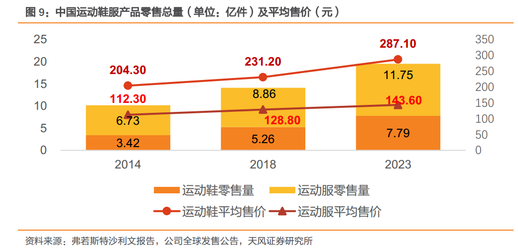国内运动鞋服的零售量逐年增加,且售价在不断攀升的背景下。迪卡侬的整合全产业链后形成的性价比优势对消费者的吸引力更加明显。