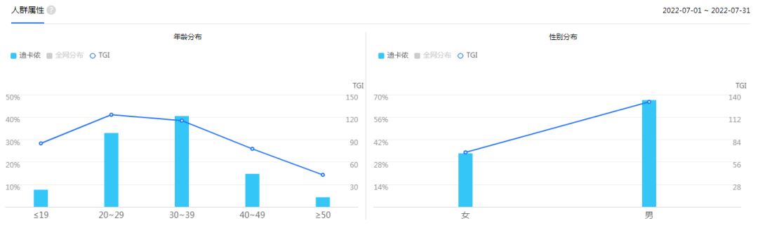 从地域上看,目标用户主要集中在国内的沿海或中部发达地区,年龄范围20-40岁用户占比高达70%(30-39占比40%),男性用户偏多。
