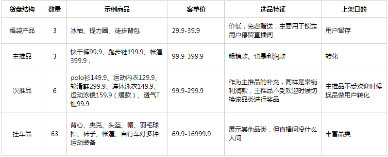 直播讲品的时候可穿插传递品牌的特性:1976年成立的运动零售品牌,把控了全产业链,占比不到1%的广告费用支出和严格的成本控制,把省下的钱全部补贴给消费者,全国XX家门店,品质保证。(主要用户做新粉的教育)