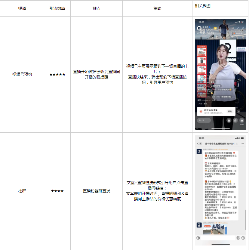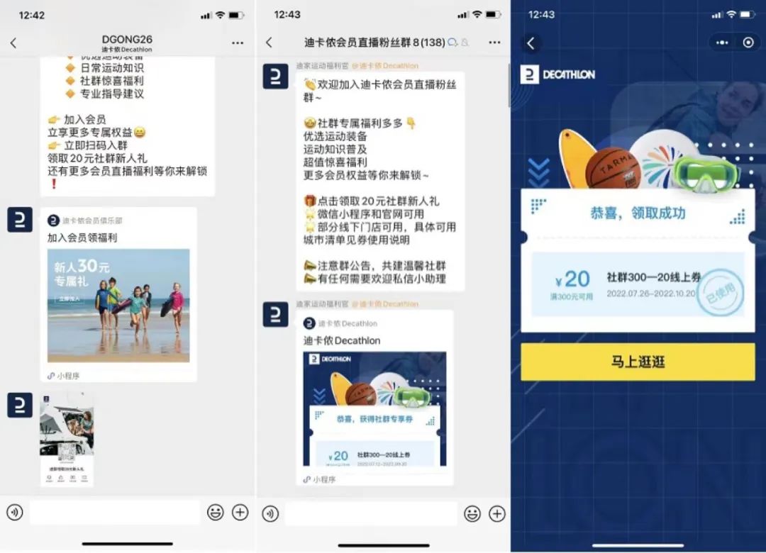 其中社群宣发,迪卡侬只宣发了直播的粉丝群。门店的私域群未见有任何推广动作。
