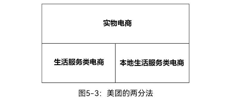 美团王惠文提出了两分法的战略思路,首先是用生活服务类电商和阿里巴巴分开,占据一个相对安全的根据地。然后是用本地生活服务类电商和携程、去哪儿分开,不在跨区域生活服务类电商展开竞争。