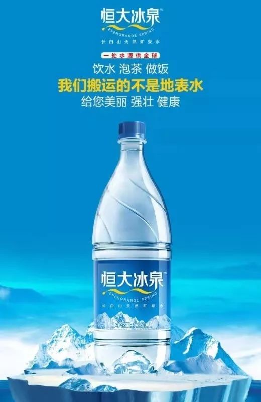 如果农夫山泉和恒大冰泉价格一样,这样做是具备一致性的。但是农夫山泉卖两块钱,跟恒大冰泉不是一个价格选择范围。从这个广告中能看出来,恒大冰泉的配称十分混乱。