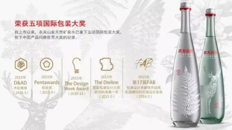 她的设计更是融合了世界顶尖的智慧。农夫山泉高端水的包装设计历时 3 年,邀请了3 个国家 5 家顶尖设计工作室进行设计,经历 58 稿、300 余次设计后才最终定稿。