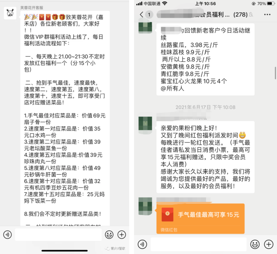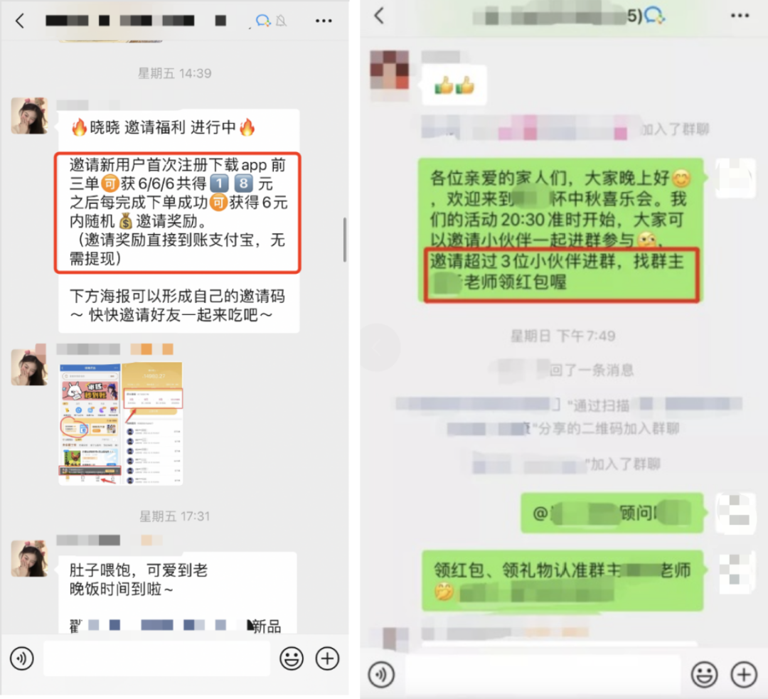 例如设置门槛,邀请x位好友入群可以领取红包或优惠券等,群满50人、100人、150等发群红包或者下单用户增加额外的福利赠送,激励用户主动拉人进群。