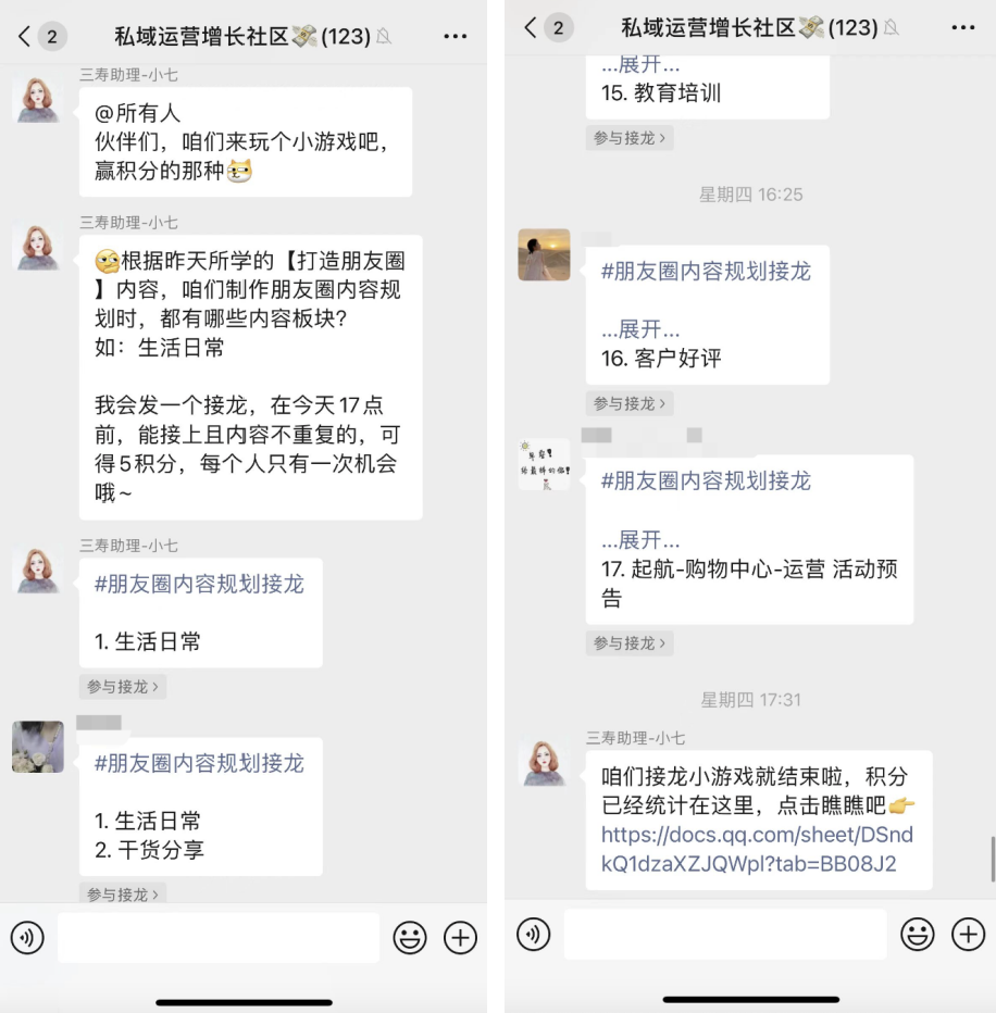接龙的形式就是“你玩我玩大家玩”,可以快速带动社群氛围,让用户主动参与。