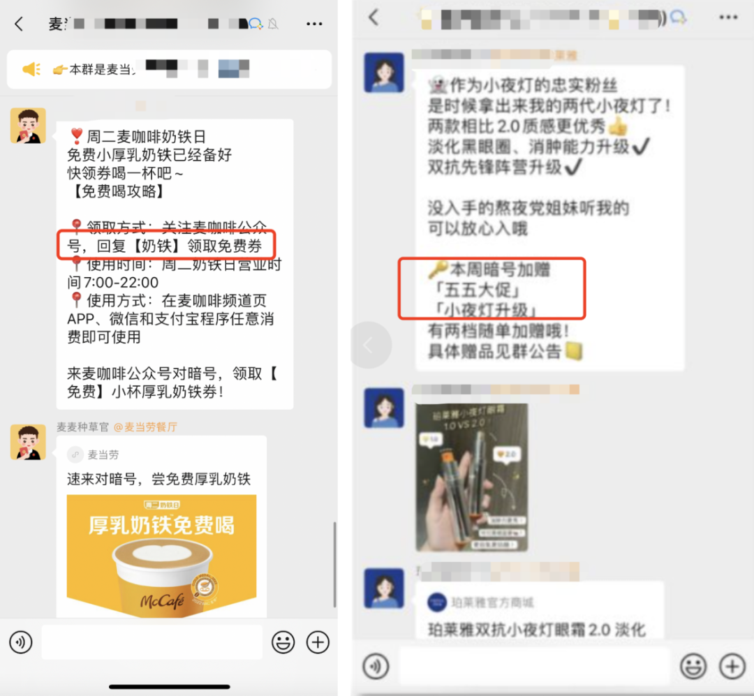 社群暗号的玩法相当于社群专属“福利”,群主在群内发布一个“暗号”,用户在线上下单或线下购买时,可以额外获得福利,促进社群用户下单成交。