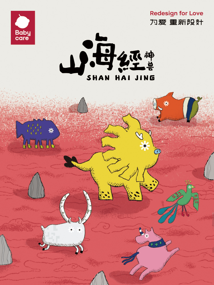 巧合的是,活泼好动的小朋友,也被父母给予了又爱又恨的昵称“神兽”。Babycare 发现部分山海经神兽代表的寓意,和品牌重点产品想要传达的信息,以及父母对“神兽宝宝”的祝愿,都有很高的契合度。