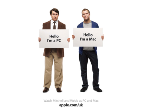 借用了英剧《米切与韦伯》中的两个主角,即使没看过电视剧,单从画面应该也能明白,广告将PC比作呆板木讷的米切,把MAC比作时尚有型的韦伯,你会选哪一个?就无需多言了吧。
