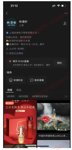 视频号(林清轩):直播、产品宣传、品牌宣传