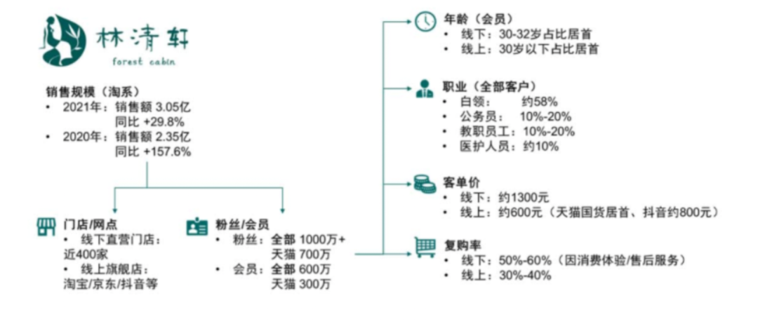 根据2020年林清轩公布的会员用户画像主要为90后的白领;客单价600~1300元,线下客单价是线上的2倍,证明服务对于美妆产品的购买营销力不容忽视。