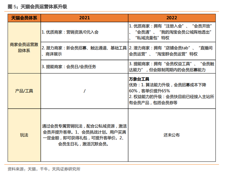 在会员价值提升方面,淘宝系的思路是:第一,推出新工具万象台给商家招募、管理会员,让商家有米可炊;第二,不同的会员运营效果会带来不同等级的商家特权差距,淘宝系由此赋予商家发展会员的牵引力。