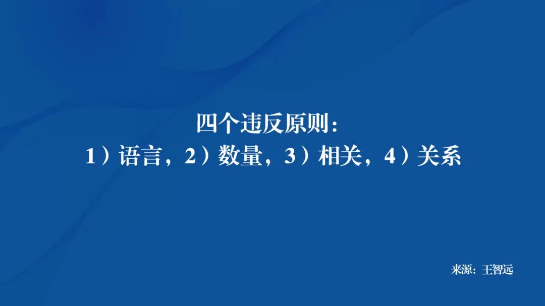 而实际过程,有意和无意的违背,本是在给自己或对方一定台阶下,让双方陷入尴尬局面,就是违反性语言准则,也成为质的准则(Maxim of quality),上述案例中均是。