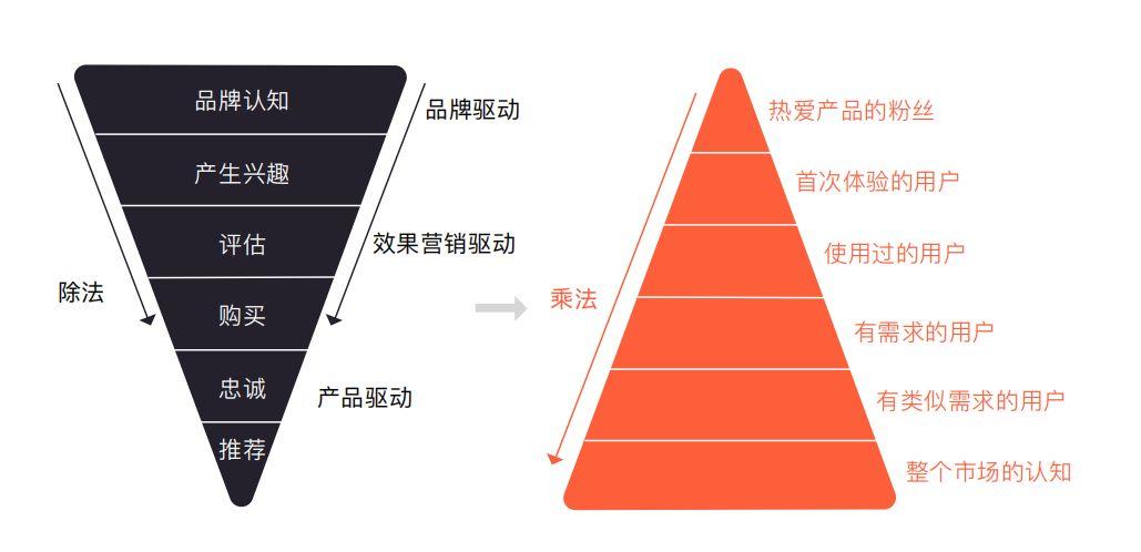 过去,整个增长过程,就像是一个巨大的漏斗,从曝光开始,一层层向下筛人,做除法。