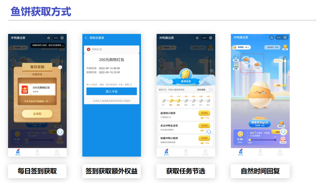 活动以支付宝小程序为载体,能够利用模板消息来给用户做活动提醒(例如签到提醒、领取鱼饼提醒等),能够有效加深用户对活动的印象,培养用户心智。