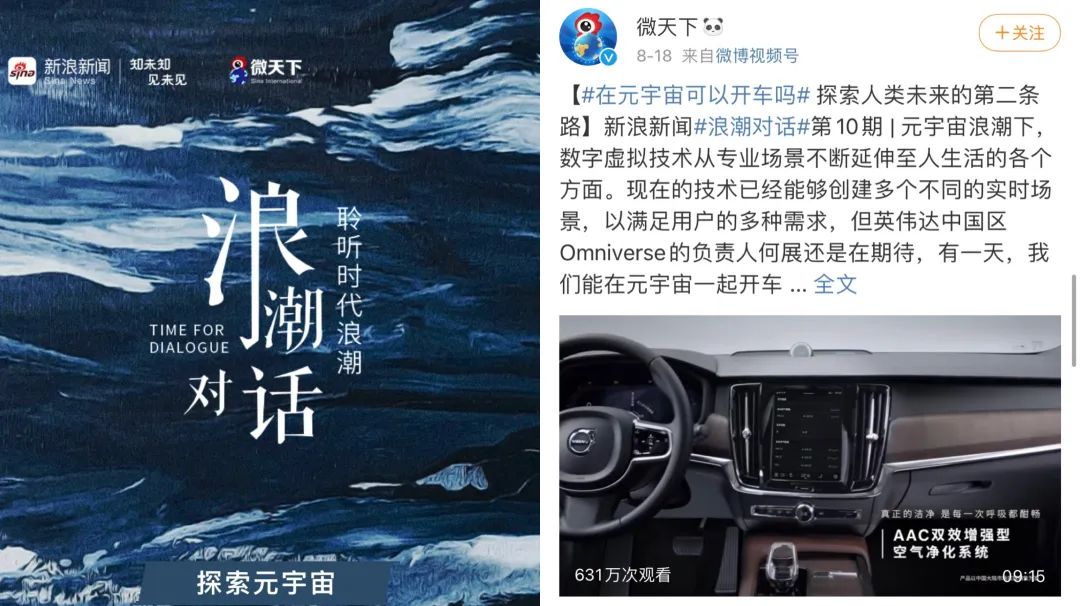 沃尔沃选择通过新浪新闻的营销生态展示潮科技与高算力,强调品牌科技感与未来感调性与品位。他们在微博上发起了话题#在元宇宙可以开车吗#,将自身品牌优势与当下热门概念结合,通过年轻人感兴趣的话题重塑了品牌形象。此外,沃尔沃还通过新浪新闻的《浪潮对话》栏目,邀请元宇宙行业大咖,探讨未来智能技术在汽车行业的发展与应用,以高端用户的触达,实现了品牌调性的升级。