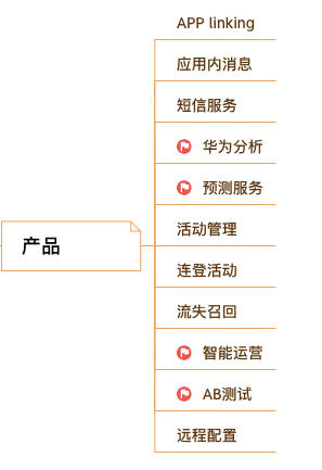 解决方案由11个产品组成,如下图,包含华为分析、预测服务、智能运营、AB测试,还有一些APP linking、应用内消息、短信服务、活动管理、连登活动、远程配置等能力。
