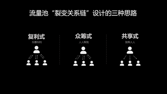 我认为游戏裂变是目前复利式裂变分享率最高的一种方式,甚至可达到50%多的分享率,因为用户希望在一种轻度游戏过程中获得一个福利。传统裂变现在可能都已经疲劳了,分享率可能只有10%左右。