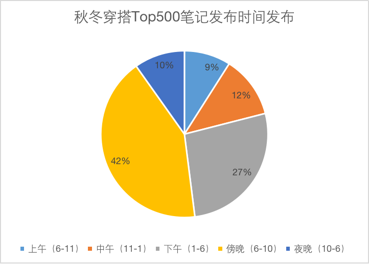 其他的时间发布笔记出现爆文的概率仅占30%,相对比还是低了很多,假设我们在穿搭类目发笔记,那么最好选择下午6-10点这个时间。