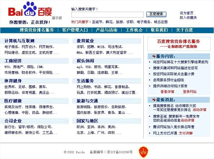 百度2002年主页