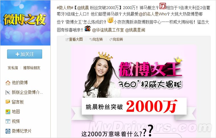 2012年“微博女王”姚晨粉丝突破2000万