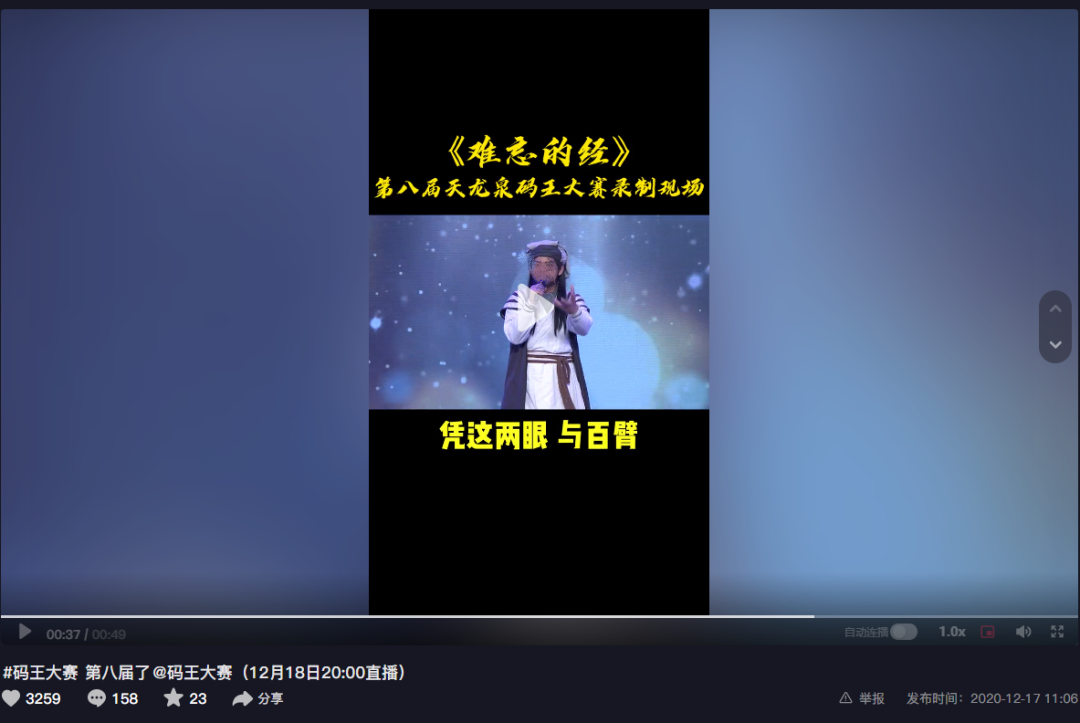 其中最火的一条视频10万点赞,博主模仿《天龙八部》里“乔峰和父亲相认”的剧情。