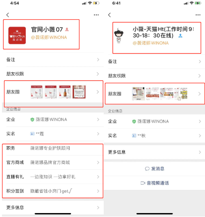 1)薇诺娜公众号虽然有多个,但是客户添加的企微均是同一个小薇号,避免客户关注多个公众号添加时同时加多个不同的小薇,造成打扰。